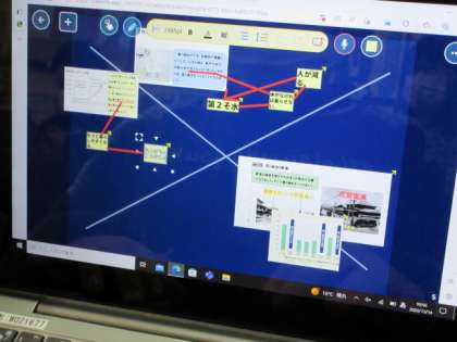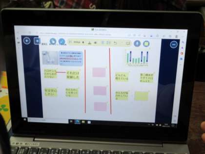 資料にノートを付け加えて書き込む子どもの姿が見られました。そして、自分から思考ツールを選んで、資料や自分の考えを整理して書き込む子もいました。とても上手に効果的に使う姿に、感心しました。