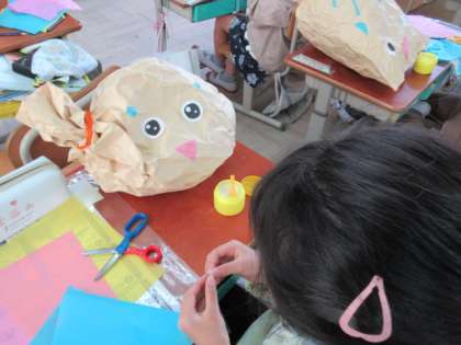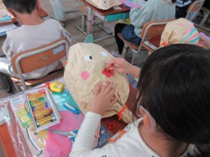 2年生 図画工作「くしゃくしゃ ぎゅっ」