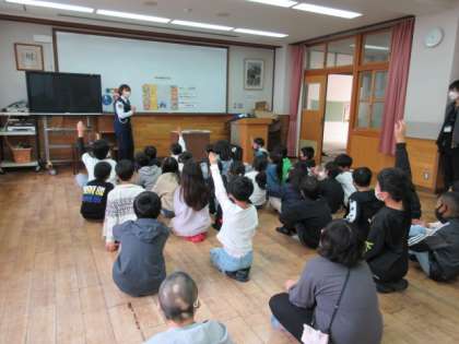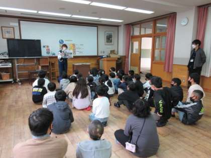 西京警察の方や、地域の方、PTAの方々にご来校いただき、自転車免許検定をしました。初めのお話では、大切なお話がいっぱいでした。「自転車は左側通行」「ふみきりでは、自転車からおりて、おして歩かなければいけない」「歩道は歩行者優先」「自動車やトラックには死角があり、車のそばにいると運転者から見えない」「自動車やトラックん内輪差」など。「知らんかった。」というつぶやきが、何回も聞こえてきました。