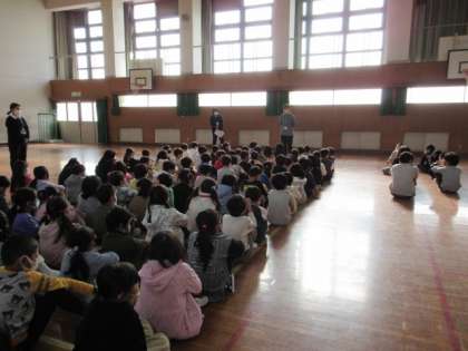 不審者が校内に侵入した想定で避難訓練をしました。初めての訓練でしたが、子どもたちはとても真剣にしっかり行動できていました。実際に訓練を行うことで、課題も見えてきました。さらに対応を改善し、よりよい避難と教職員のスムーズな連携と行動で、安心安全な学校を確実につくりたいと思います。