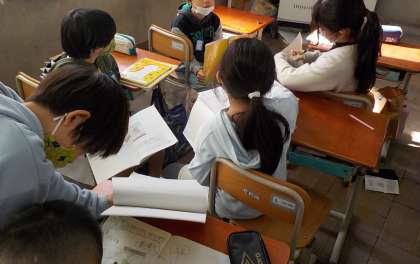 社会科「京都市の様子とくらしのうつりかわり」の単元で明治初期から令和の現在までどのように変わってきたかのを学習しています。京都市がどのように広がり,発展していったのか,またくらしはどのようにかわっていったのかを資料を使って考えています。学習をすすめるにつれて様々な京都市のうつりかわりを知り,子どもたちは驚くとともに,今は電気もガスも通って生活もとても便利になったのだな,と実感しているようです。