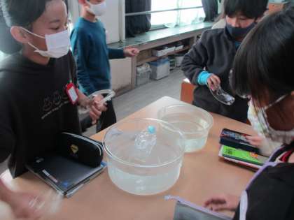 11月28日(金)理科の学習でお湯と氷水を用いた実験を行いました。理科室での学習は今回が初めてで、とてもワクワクした様子でした。