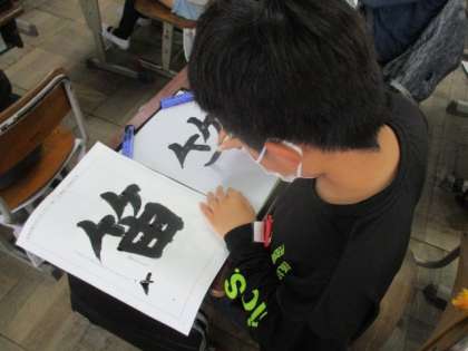 書写の学習で『笛』という字を書きました。今まで学習したおれやはらいを生かして書くことができました。