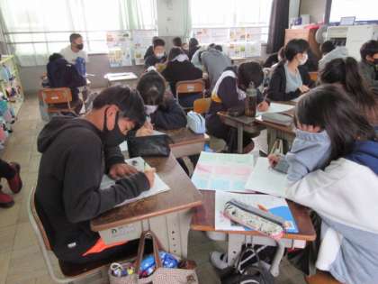 歴史ででてきた様々な文化を比べて考えました。どのような時に文化が生まれたのか、だれが生み出したのか、比べて考えると新しい視点が見えてきました。その視点で今の文化を考えました。ALTの先生が現代の日本の文化について思ったことや気づいたことを話してくださいました。その話からさらに考え、発表したりまとめたりすることができました。