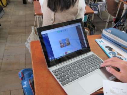 聞く人が楽しめるように、工夫して写真や絵を選び、ロイロノートのテキストにはりつけている子どもたちの様子が見られました。発表を見通して、しっかり編集していました。