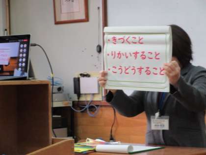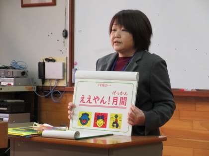 ともだちのいいところやよかったところを見つけたら、カードにかいてポストに入れてほしいこともお話されました。それぞれの教室で子どもたちはしっかり話を聞きました。
