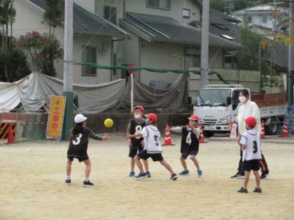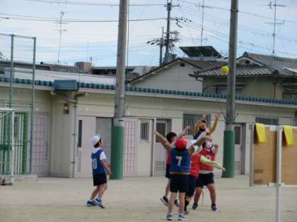 ボールを回すときに、どこに投げてよいかわからない友だちのために、相手のいないところへ積極的に動く様子が見られました。相手にボールをとられないように、気をつけながら、上手にパスを回し、ゴールまでボールを運ぶことができていました。