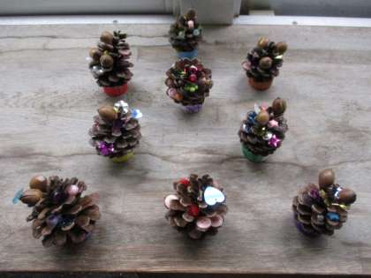 秋見つけで集めてきたどんぐりをつかって、まつぼっくりツリーをつくりました。