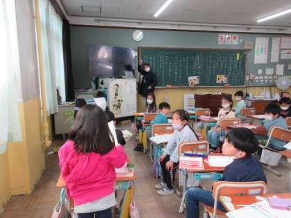 教材を読んで、登場人物の気持ちを考えることを通して、そうじについて考えました。授業の初めは「めんどくさい」と思っていたそうじですが、まとめでは、「もっともっときれいにしたい」「学校中をきれいにしたい」「掃除をがんばってみんなの笑顔をつくりたい」という意見がでました。