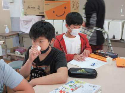 実際に、昆布だしを飲みました。昆布の香りがするけれど、こどもにとっては薄い味。昆布の香りや昆布だしの色をしっかり観察しました。