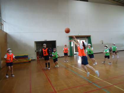 バスケットボールの学習では,全員が活躍できるよう,チームで協力して取り組みました。その成果もあり,「初めてシュートが入った!」という喜びの声も聞かれました。