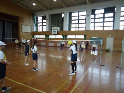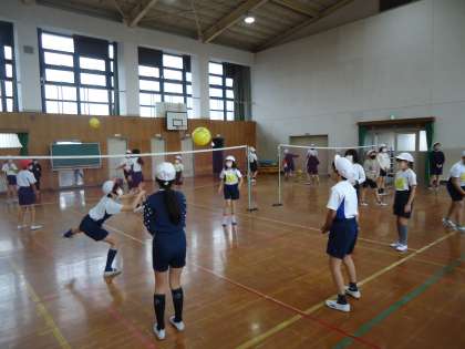 今週よりソフトバレーボールの学習を始めました。最初の授業では,レシーブやトスの練習をしたり,ゲームをしたりしました。