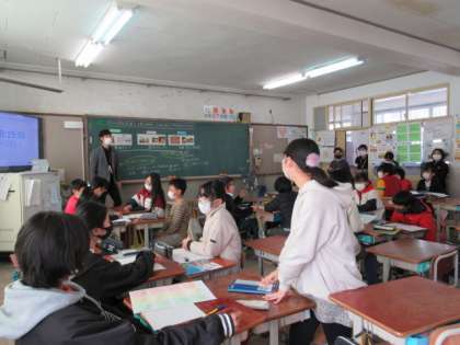 「今の時代の文化はある?」と尋ねると「ない。」子ども達はという返事をしましたが、ALTの先生のインタビューを聞くと、「Japanese game is amazing!」と話されていました。マリオやピカチュウは、ALTの先生や先生の家族の皆さんも大好きだそうです。「今の時代の日本の文化はあるのだなあ。」「世界にも認められているのだなあ。」という気づきが生まれました。「普通に過ごしているけれど、未来から見たら普通に見過ごしていることもこの時代の文化として見られるかもしれない。」という予想の発表がありました。文化について、時代を通して、時代をこえて、考えることができました。