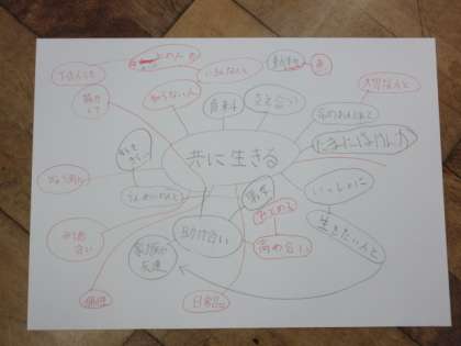 グループでしっかり話し合い、考えをマッピングでまとめました。互いに考えたことを話し合いました。学年で話し合うときも、積極的に発言しようとする態度が前向きですてきでした。