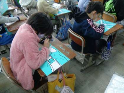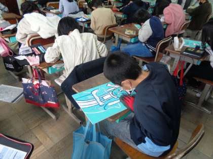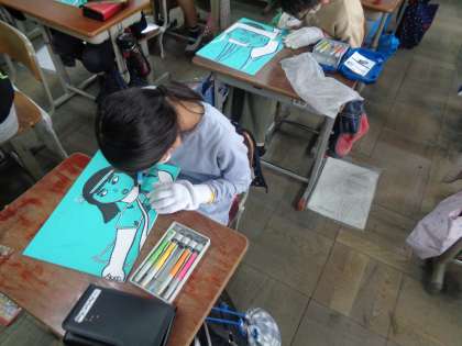 図工の版画ではついに1番難しい「顔」の部分に取りかかる子どもたちも増えてき、細かい作業になる中、楽しく積極的にに取り組んでいます。