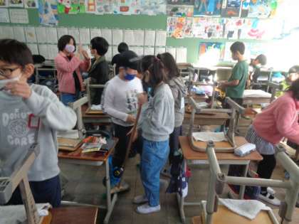 4年生 「図工」最後の片付けまでみんなで協力して取り組んでいます