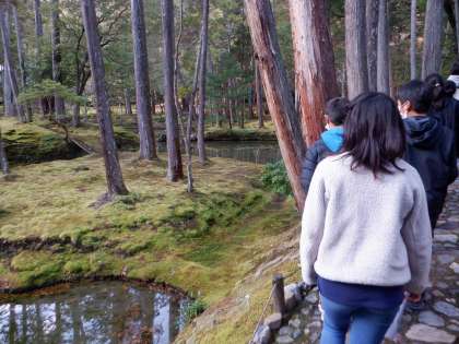 松尾小学校創立150周年事業の一環として、今年度の6年生は特別に西芳寺(苔寺)の拝観をさせていただきました。厳かな雰囲気の漂う本殿や緑の美しい庭園など、普段入ることのできない世界文化遺産のすばらしさを感じることが出来た貴重な体験となりました。
