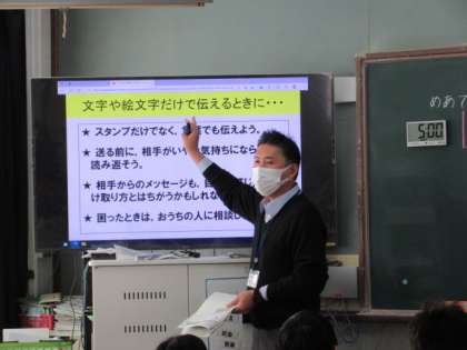 最後に情報インストラクターの方から、人によって感じ方は違うこと、大事なことは直接コミュニケーションをとって話すことも大切、SNSなどで困ったらおうちの人に相談する、など大事なポイントをお話されました。とても大切な学習でした。今日の学びを、ずっと忘れずに過ごしてくれるといいなあと思います。
