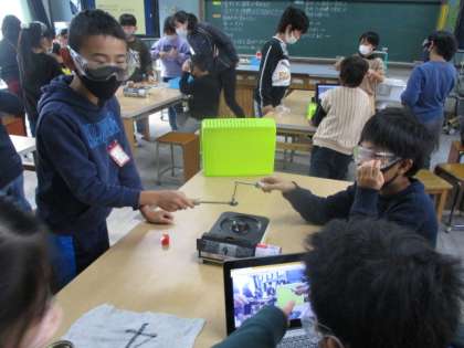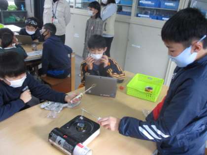 理科では、鉄の玉を温めると体積は大きくなるのかを実験を通して学習しました。初めは通っていた輪っかも、鉄の玉を熱した後だと通らなくなることに大変驚いている様子でした。