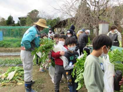 「何をつくってもらおうかなあ。」と家の人につくってもらう大根の料理を楽しみにしている子もいました。学校までの道のりは、大根の行列ができました。松尾小の冬の風物詩です。