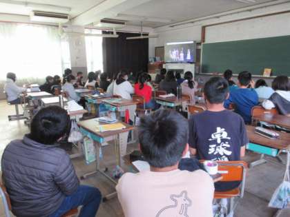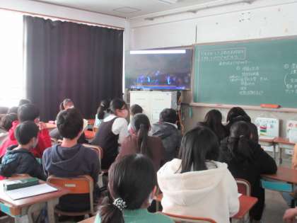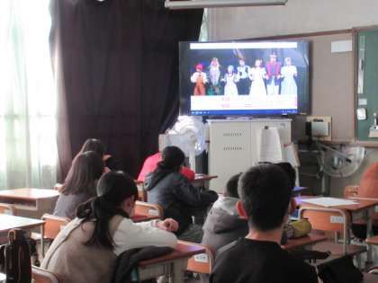 6年生は、各教室で劇団四季ファミリーミュージカル『人間になりたがった猫』の演劇鑑賞をしました。一幕約65分、第2幕約55分の舞台でした。歌あり踊りあり、「人間とは・・」「苦しいことも乗り越える」などのメッセージが伝わる舞台で、子ども達は最後までじっくり見ていました。