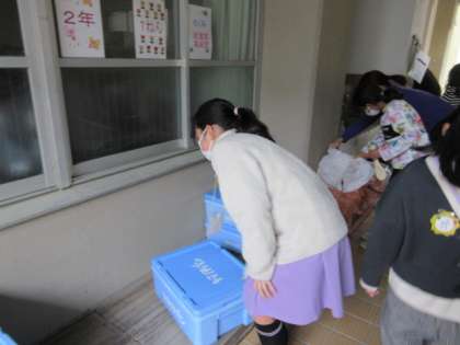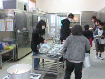 給食委員会は、毎日の給食終了後、昼休みに、全校児童がきちんと給食を返すことができるよう、給食室で見てくれています。とても熱心に、一生懸命がんばっています。毎日、えらいなあと、感心しています。