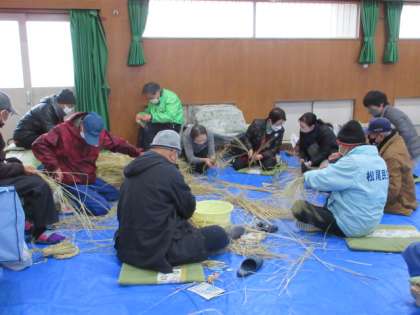 わら綯い体験のコーナーがありました。しめ縄をつくることができました。うまくできなくても、最後は地域の方が手伝ってくださり、誰もがとても立派な、しめ縄をつくることができました。