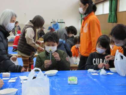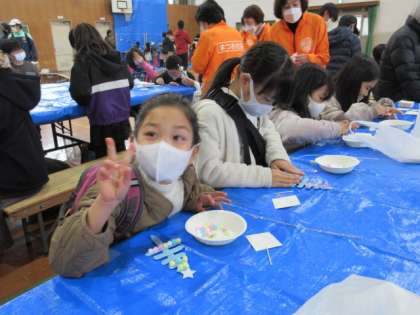 クラフトコーナーです。クリスマスツリーに思い思いに飾りをつけることができました。とても楽しそうでした。