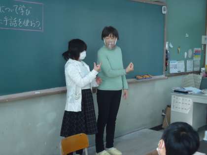 5年生は,「共に生きる」をテーマに総合的な学習の時間を進めています。15日(木)に,手話講師の方に来ていただき,手話について教えていただいたり,質問をさせていただいたりしました。今後,「共に生きる」ために必要なことを考えていきます。
