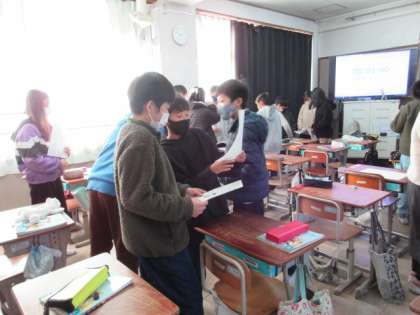 心に残る学校の行事を、英語で交流しました。「What’s your best memory?」「My best memory is our〜.」と英語で交流することができました。行事でしたことをどんどん思い出しているようです。次回は、したことを英語で話すようにしたいと思います。