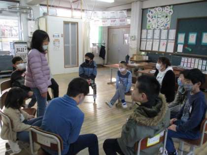 初めて6くみに来てくれた教育支援の先生への自己紹介も含めて、国語の時間にスピーチをし合いました。
