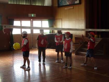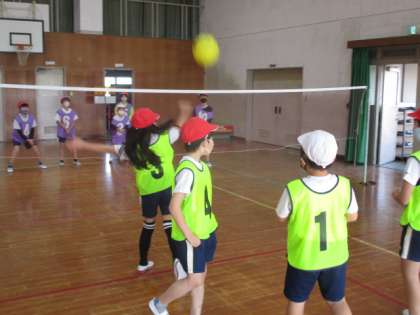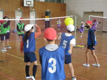 体育の学習ではソフトバレーボールをしています。初めはなかなか続かなかったラリーも続くようになってきて、試合も白熱してきました。来週からはとび箱運動が始まります。