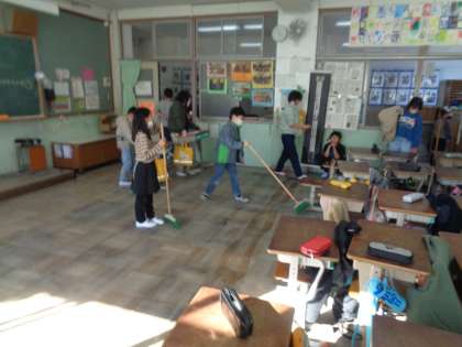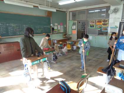 寒い中でも換気をし、教室やろうか、階段など様々なところをみんなで協力して掃除をしました。
