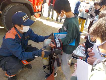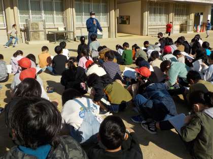 1月11日(木)は,消防士の方に来ていただいて,消防士の仕事や消防車の仕組みなどについてお話を聞きました。消防士の方が,「みんなの命を守りたい」という思いをもって取り組んでくださっていることを知ったり,実際に放水している場面を見せていただいたりして,子どもたちは目を輝かせて「すごい!」「かっこいい!」と,とてもうれしそうにお話を聞いていました。今回教えていただいたこと,見せていただいたことをこれからの生活にも生かしていってほしいと思います。