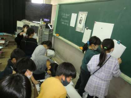 図画工作科「いろいろうつして」の学習では,紙版画をしています。様々な種類の紙を使ったり,梱包材やばらんを使ったりして素材の良さを生かし,組合せを工夫して生き物を表現しています。各クラス,版を作ったり実際に刷ったりして,素敵な作品が完成に着々と近づいています。