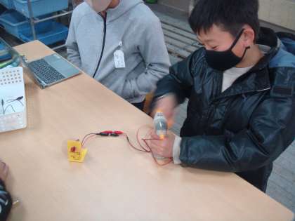 手回し発電機や光電池、コンデンサーを使って、つくった電気やためた電気が乾電池と同じ働きをするのかを調べる実験をしました。これから身の回りの電気について理解を深め、発電や蓄電、電気の変換が私たちの生活とどのように結びついているのか学んでいきたいと思います。