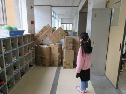 阪神淡路大震災から28年目を迎える今日、松尾小学校では、地震を想定した避難訓練を行いました。避難する廊下や階段に、がれきがあって通れない、ガラスが散らばっていて注意をしなければいけない、という設定でした。避難経路を確認した教職員が、確認の結果を報告し、教頭先生が避難経路を判断して放送することで、安全に避難をする訓練をしました。がれきやガラスとして、段ボールを使い避難経路に置きました。子ども達や教職員は、真剣に落ち着いて避難をすることができました。