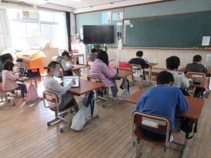 一人一人がミライシードをしました。それぞれの進度に合わせて問題を選び、集中して学習をすることができました。何度も問題をやり直す姿も見られました。