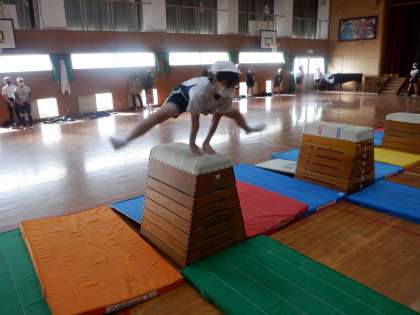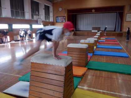 体育科では「跳び箱運動」に取り組んでいます。5年生では跳ぶことのできなかった高さに挑戦したり、新たな技の練習をしたりしています。安全に気を付けながら、頑張って練習しています。
