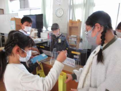 図書委員会で、1月の読書週間のイベントを行っています。本を返して借りた人は、くじ引をすることができます。当たったら、一回に3冊借りることができるチケットをもらえます。3学期早々に、図書館に積極的に来る子ども達の姿が見られました。