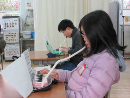 鍵盤ハーモニカで、たくさんの曲の演奏の練習をしました。みんな、とてもよくがんばりました。先生が弾くオルガンのメロディーと、子ども達が演奏する鍵盤ハーモニカのメロディーがあわさると、とても美しい旋律となり、音がきれいに響いていました。