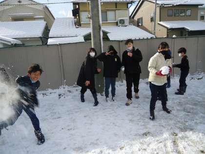 校庭にたくさん積もった雪で雪合戦をしたり,雪だるまを作ったりしました。みんなで楽しい時間を過ごすことができました。