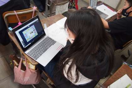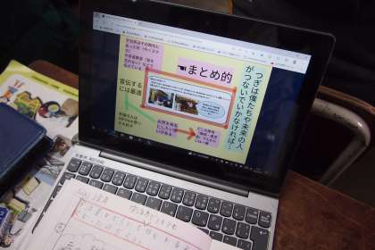 社会科では、産業さかんな宇治市の学習をしています。GIGA端末を活用しながら、宇治茶を多くの人たちに知ってもらう取組についてまとめることができました。