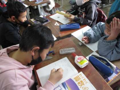 算数では、分数の学習が終わり、新しく「変わり方」の学習が始まりました。今日は周りの長さが18cmの長方形をたくさん見つけ、表に整理しました。