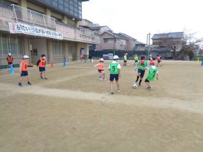 体育ではとび箱が終わり,グランドでのサッカーがはじまりました。みんなで声をかけ合いながらチームワークを大切に取り組んでいます。