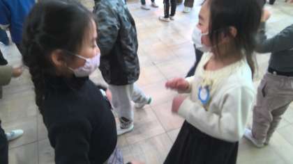 わらべうたの「おちゃらかほい」をしました。ペアを変えながら,色々な人と歌いながら手遊びを楽しみました。これまで,「さんちゃんが」や「おおなみこなみ」を楽しんだので,またやってみてほしいと思います。