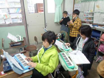 全員での演奏に向けてたくさんの楽器を使いながらそれぞれ一生懸命練習しています。