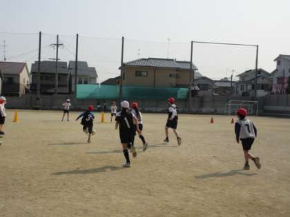 自主的に準備し、たくさんゲームをしました。パスをうまくまわす子どももたくさんいました。みんな、どんどんボールに向かってプレーをして、積極的に活動しました。