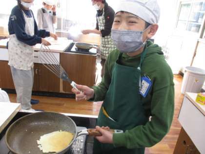 生地をつくったり、バナナを切ったり、チョコレートを溶かしたり。。。と作業はたくさんありましたが、みんなで協力してテキパキと進めることができ、おいしいクレープが出来上がりました!