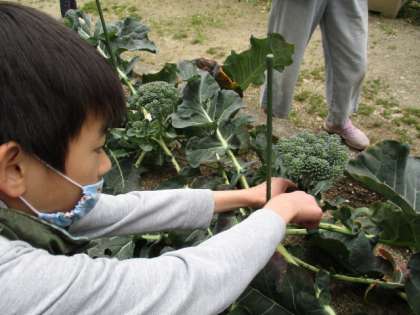 「おかわりくん」という品種のブロッコリーが、主株の収穫のあとも続々と芽を出し、今日また収穫することができました。